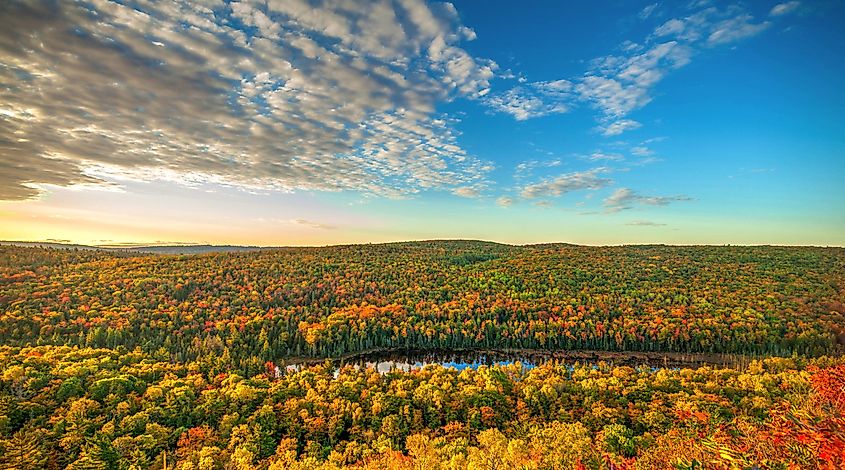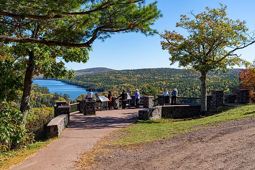 游客在密歇根州科珀港的布罗克韦山观景台欣赏美景。图片来源 Melissamn 来自 Shutterstock